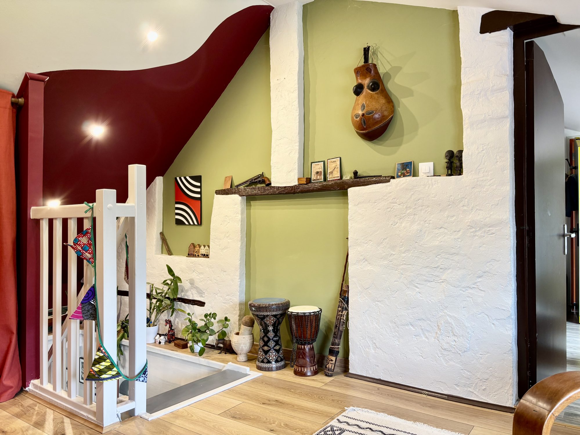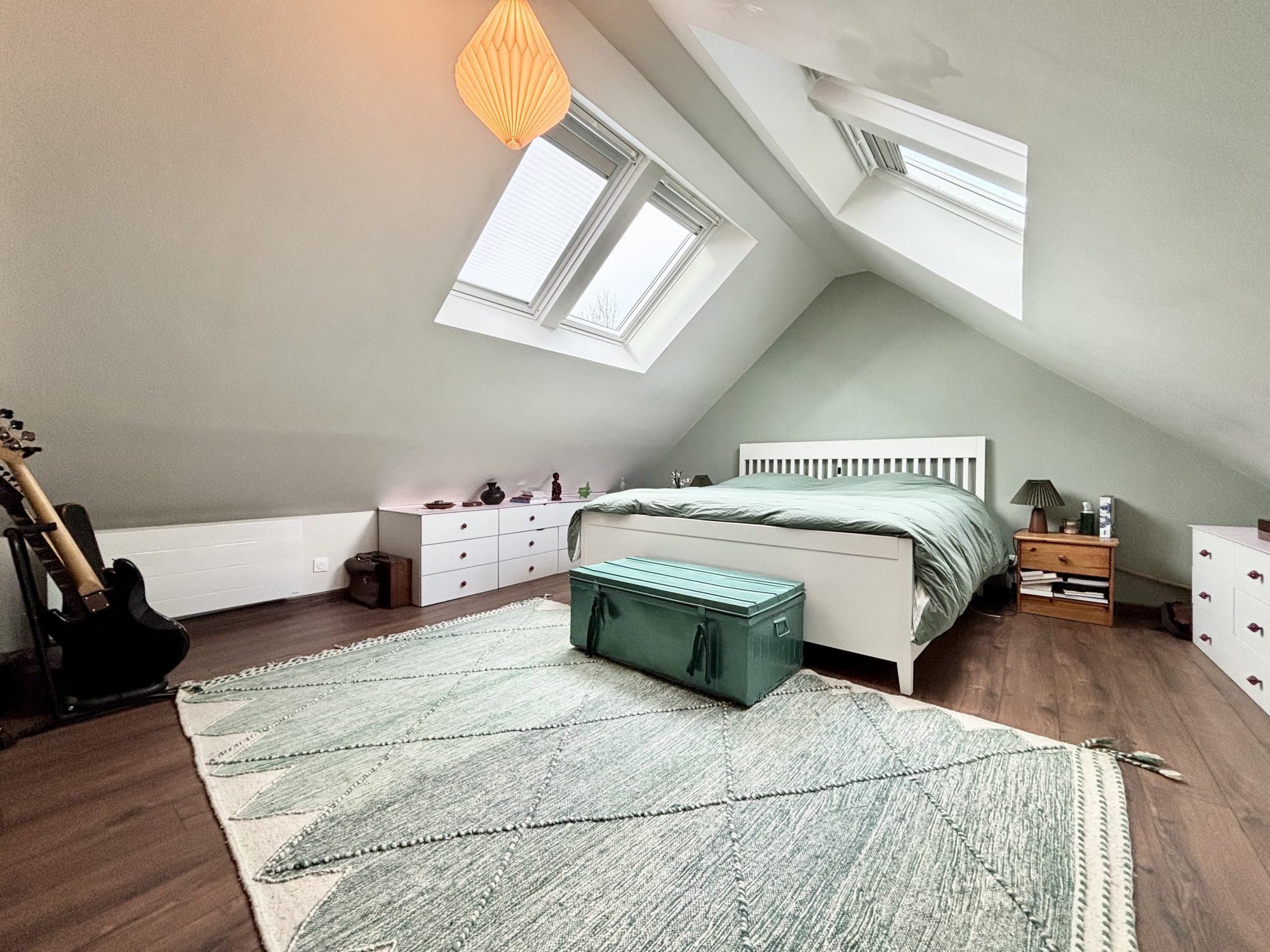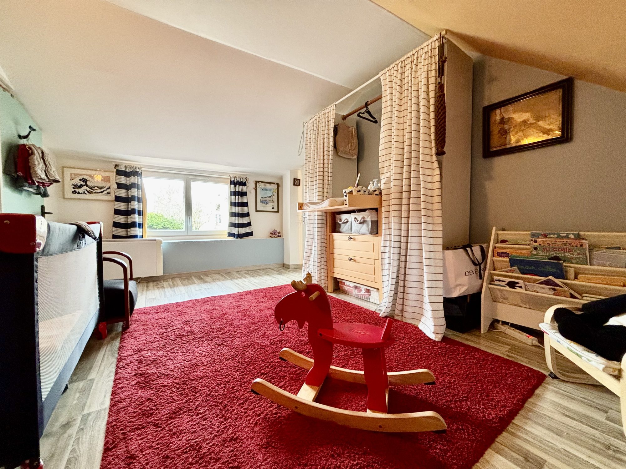 À l'étage vous trouverez un palier desservant 3 chambres dont une en enfilade mais avec possibilité de séparation en ajoutant une cloison.