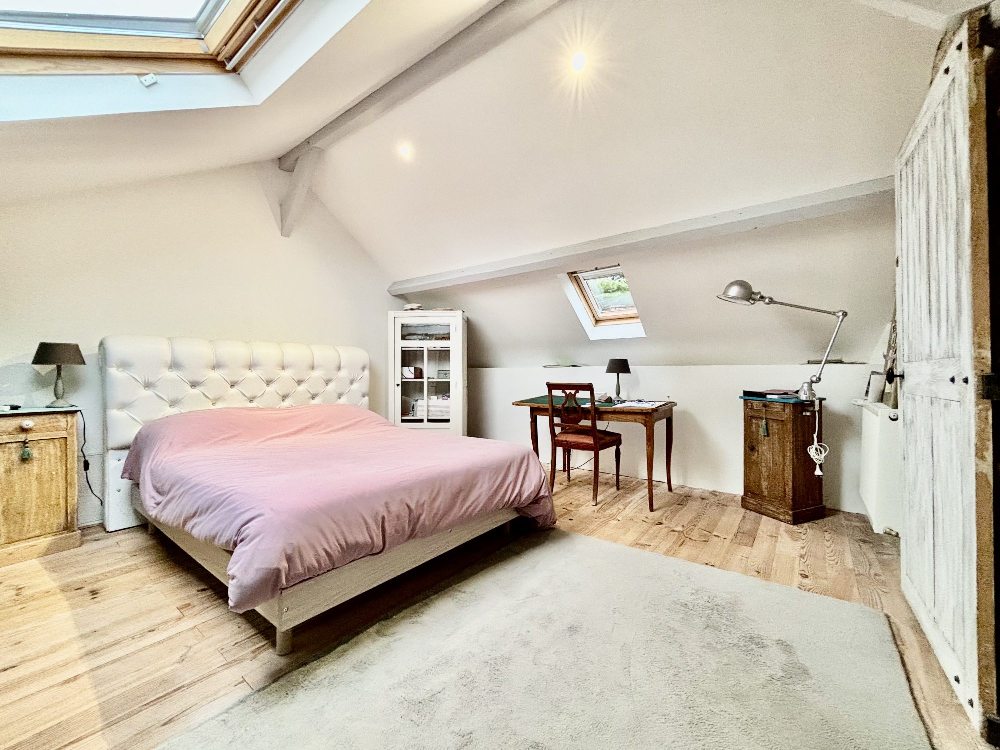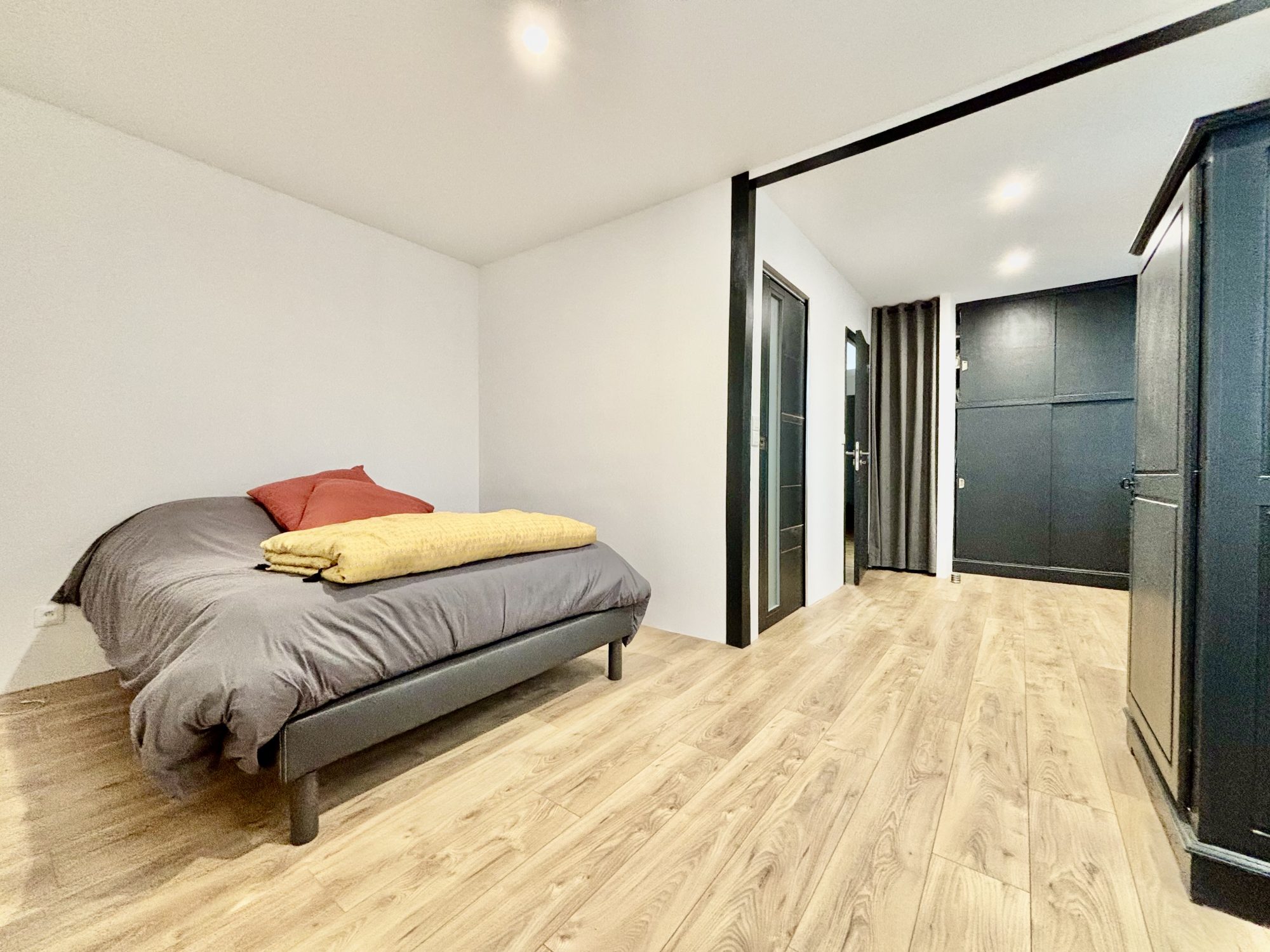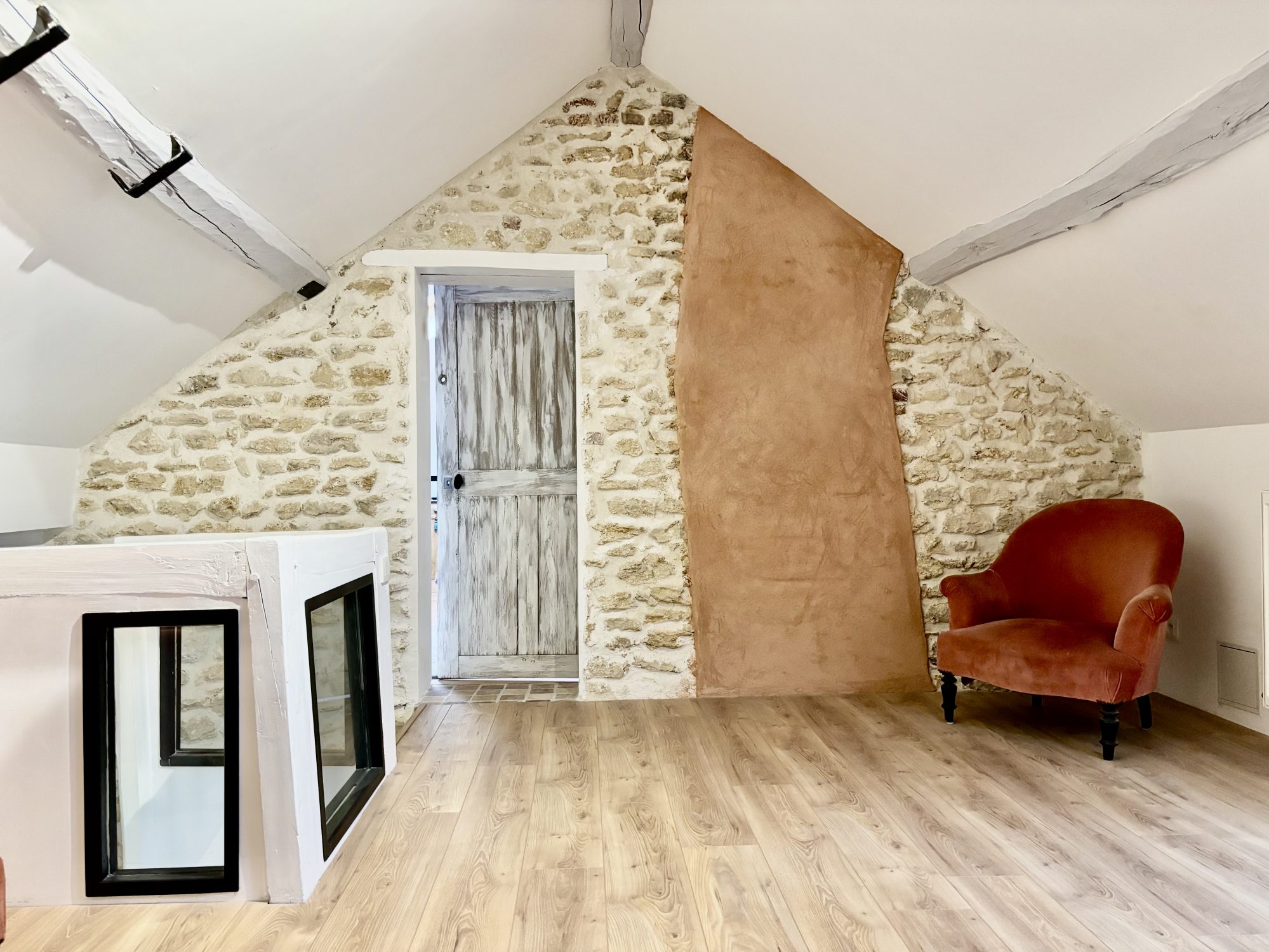 Au 2 ème étage, une grande pièce palière / salon et une chambre.