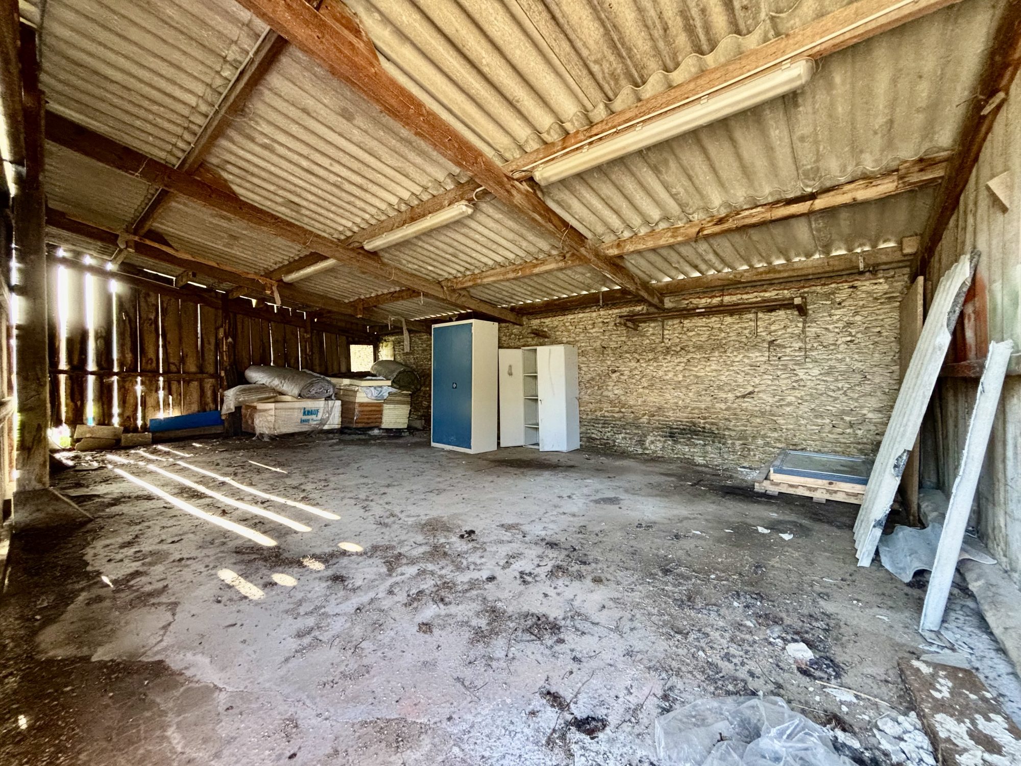 La propriété se compose de plusieurs bâtiments totalisant environ 700 m² de surface. Une partie des bâtiments est équipée en électricité, eau et dispose d’un système de chauffage, permettant une utilisation immédiate selon vos besoins.