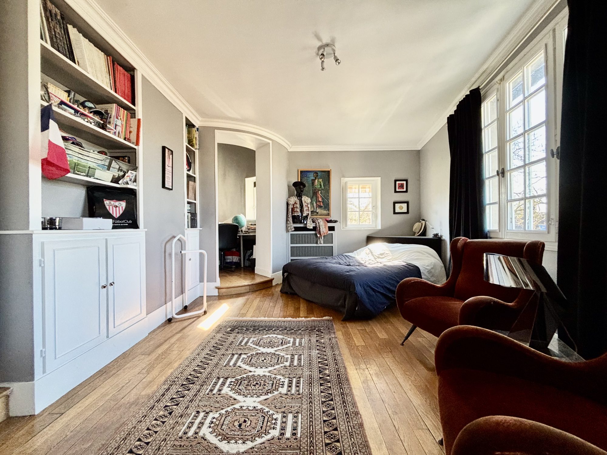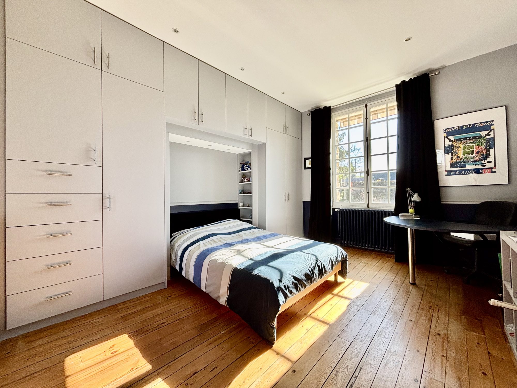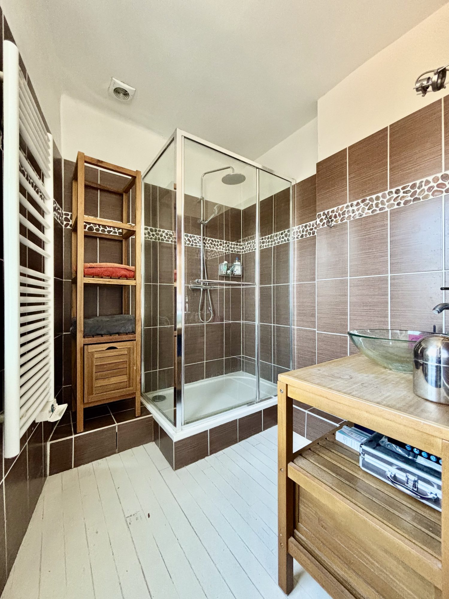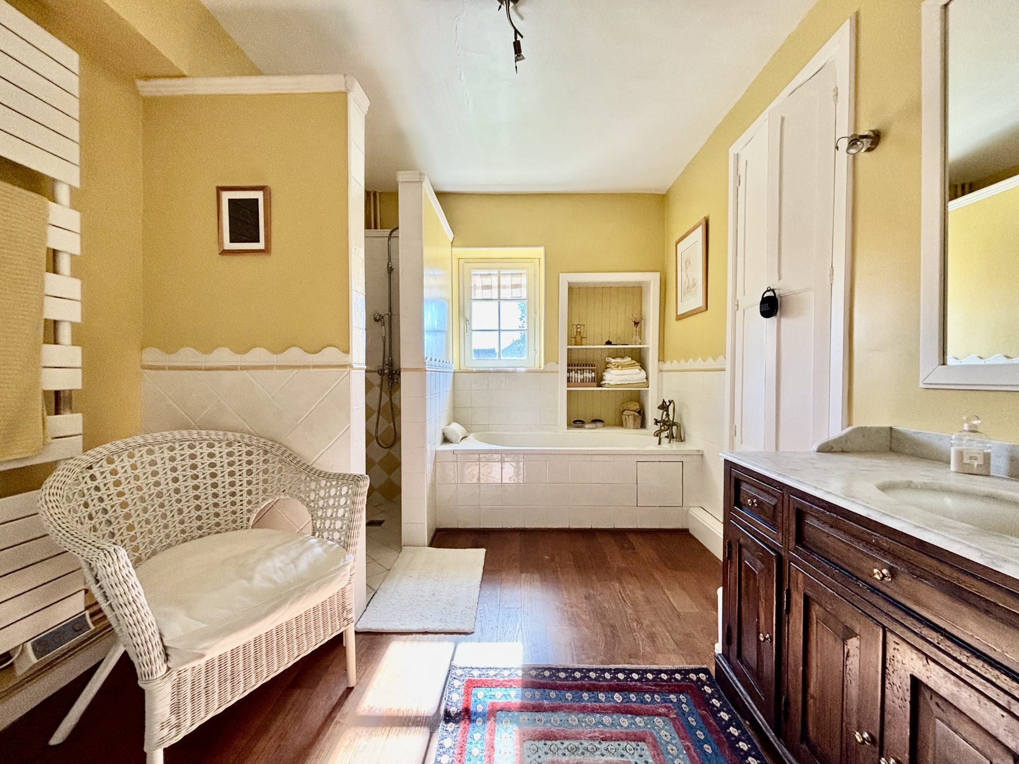- au 1er étage : un palier avec placard desservant un wc, une chambre avec une salle de bains mixte (douche et baignoire) et deux chambres avec chacune sa salle de douche.