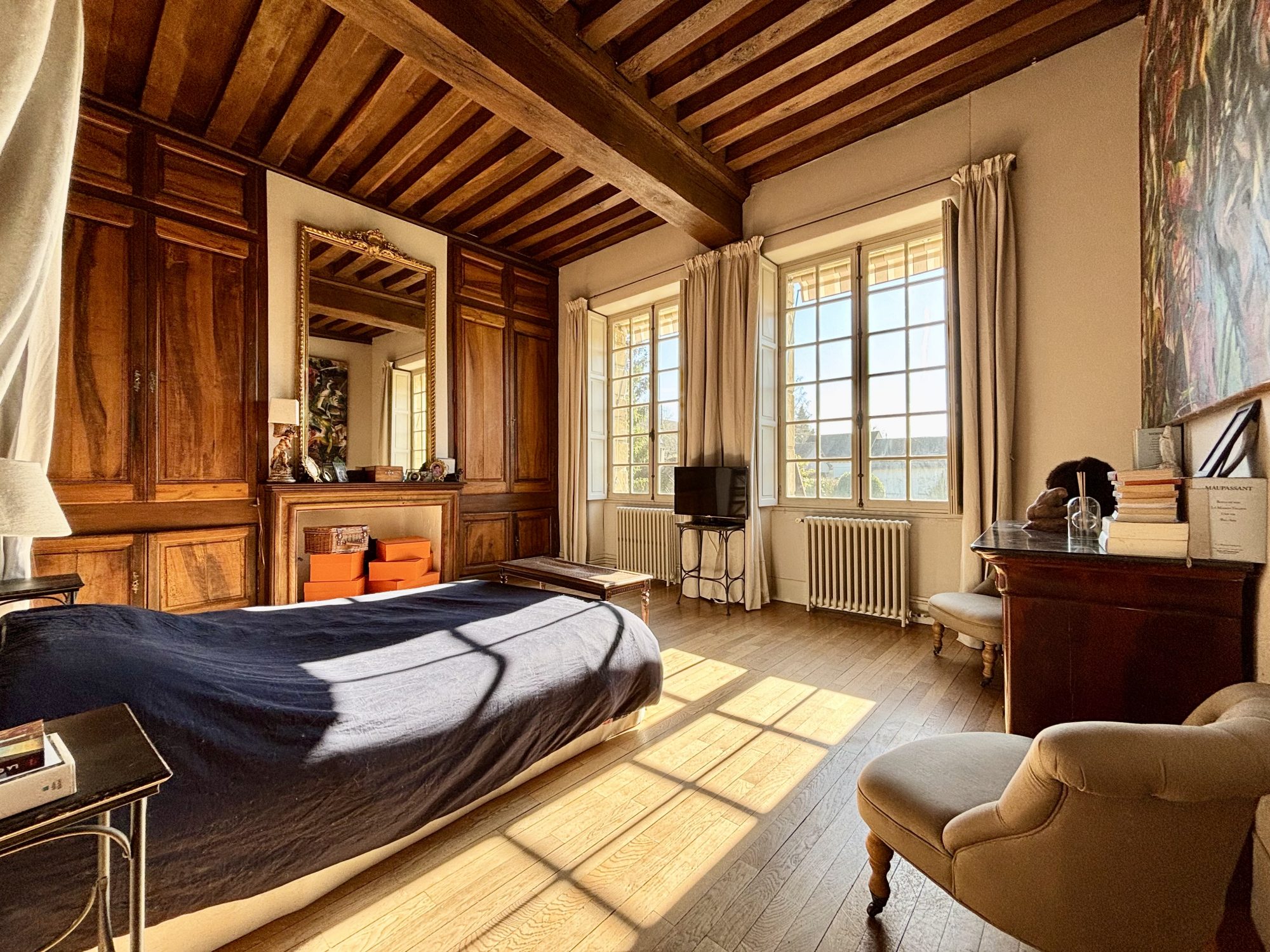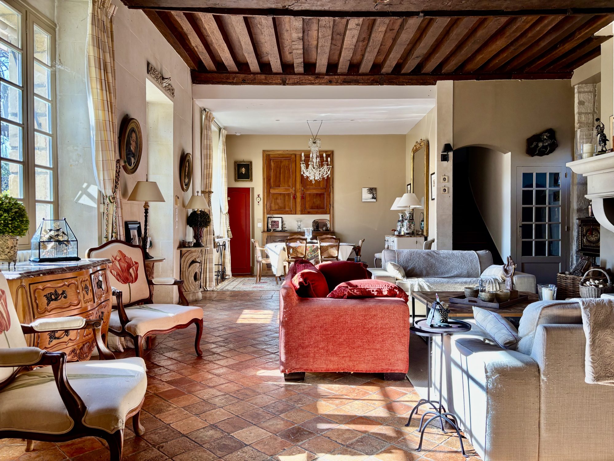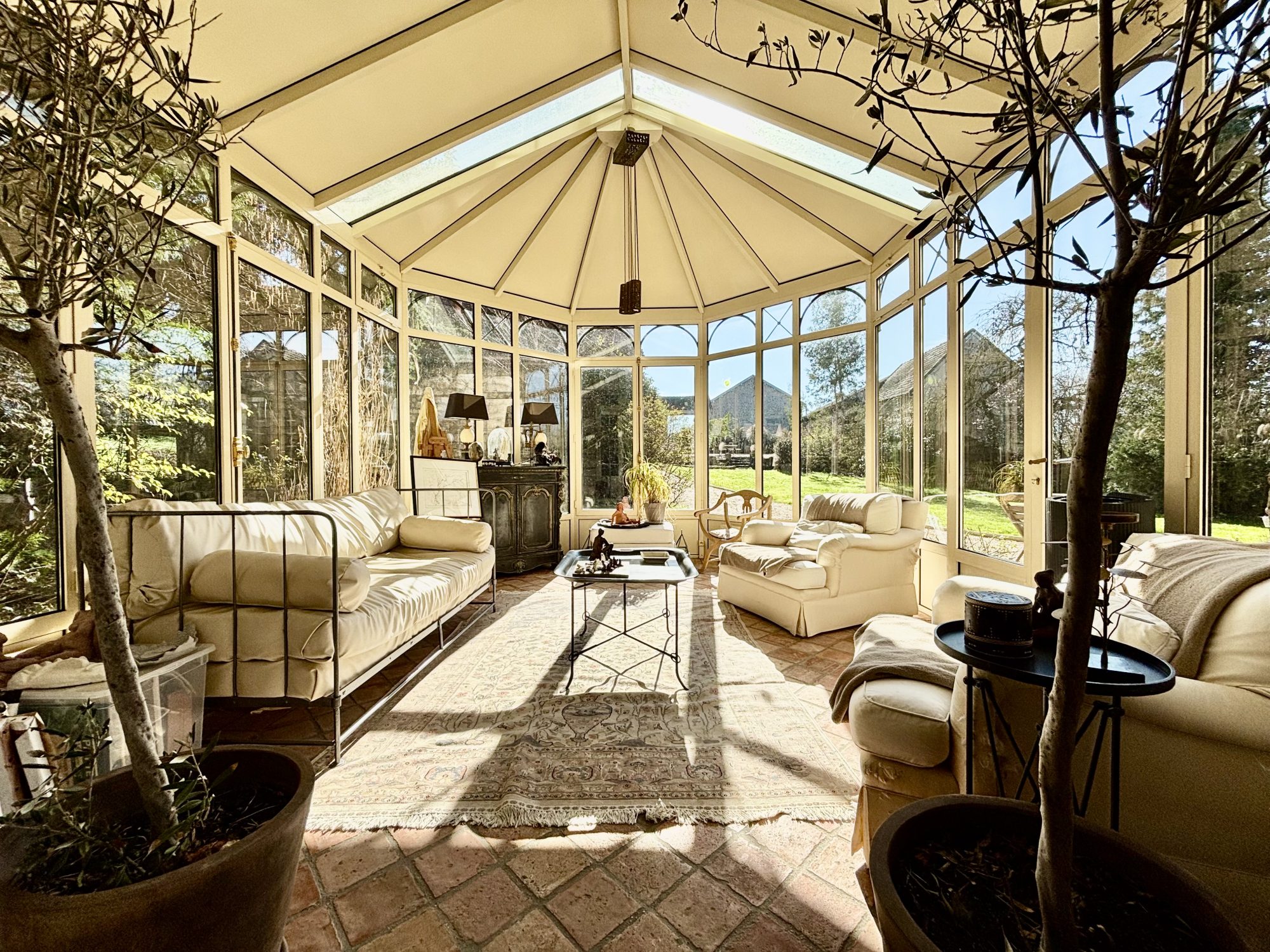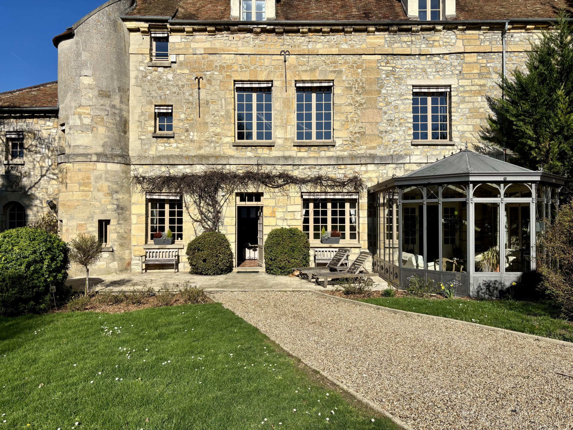La bâtisse principale de 266 m2 habitable (372 m2 au sol) séduit par ses éléments anciens préservés (poutres, tomettes, cheminée, tourelle, pierre de Bourgogne pour la terrasse) et son atmosphère chaleureuse. Idéale en résidence principale, secondaire, comme en maison de famille.